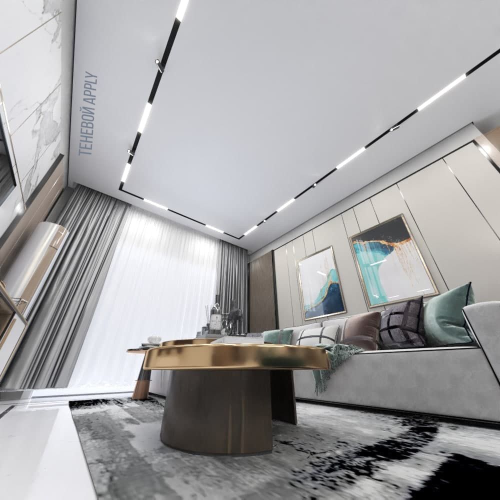 Парящие потолки- это современное направление в дизайне натяжных потолков. При креплении натяжного потолка к стене, благодаря теневому профилю Apply создается аккуратный теневой зазор с эффектом парящего потолка - потолок будто-то бы зависат в воздухе, без использования декоративных вставок или багетов по периметру.