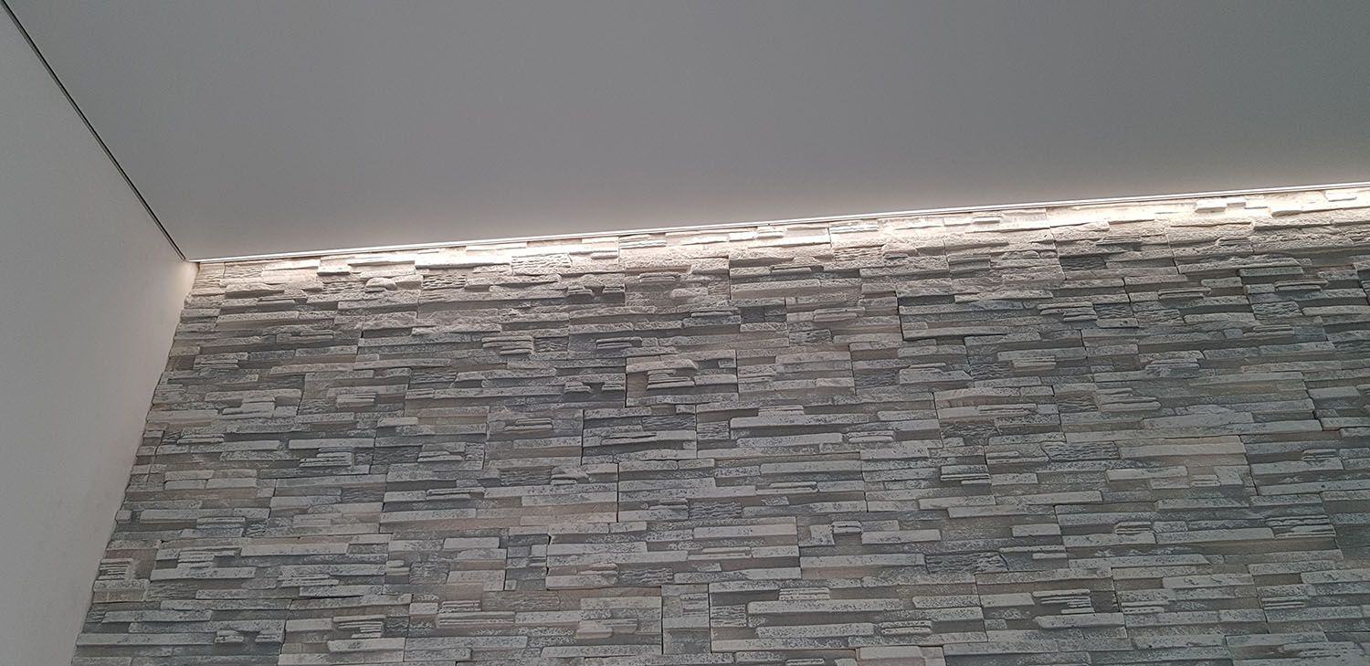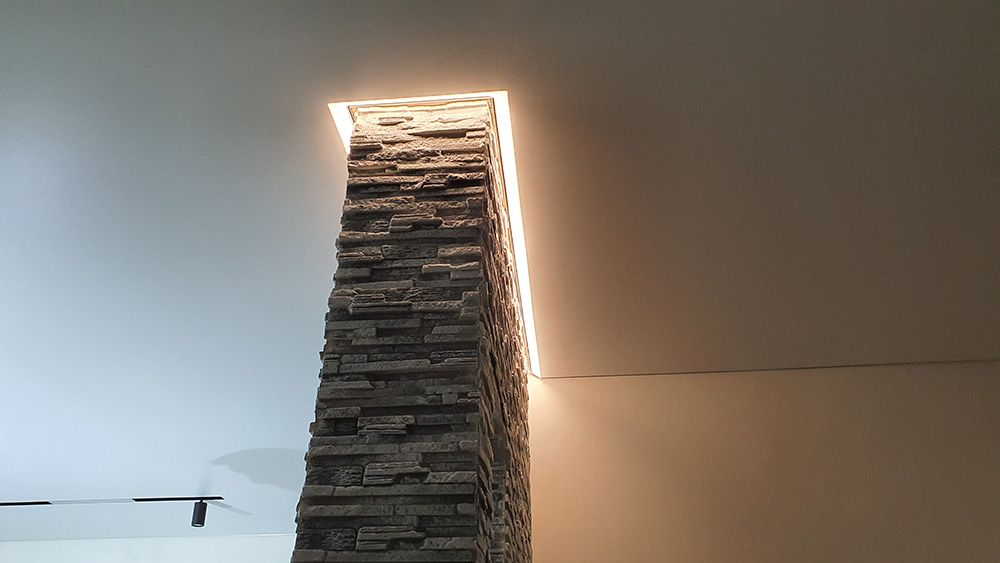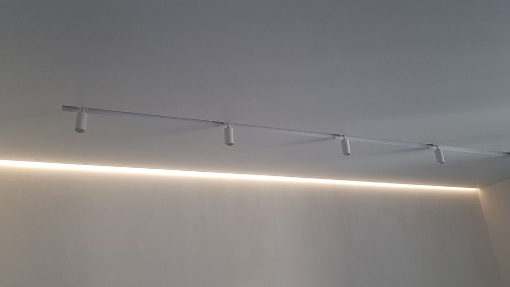 Благодаря выступающему переднему краю профиля, о который опирается полотно, возможно устанавливать профиль на неровные стены, не теряя качества засветки;